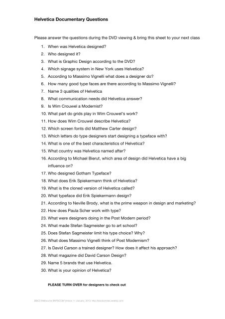 Helvetica Documentary Questions Weebly